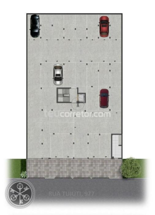 Apartamento com 1 dormitório; Banheiro Social; Amplo ambiente integrado sala de estar/jantar; Cozinha com churrasqueira; Lavanderia;