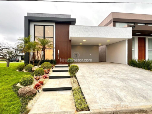 Residência no Condomínio Marina Park composta por 3 suítes, sala ampla 3 ambientes com lareira, cozinha americana, lavanderia, garagem para 2 carros, área com churrasqueira, terraço, laje de concreto, gesso, água quente com aquecimento solar.